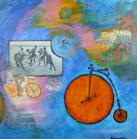 FREEWHEELING, 24" x 24" acrylic/collage